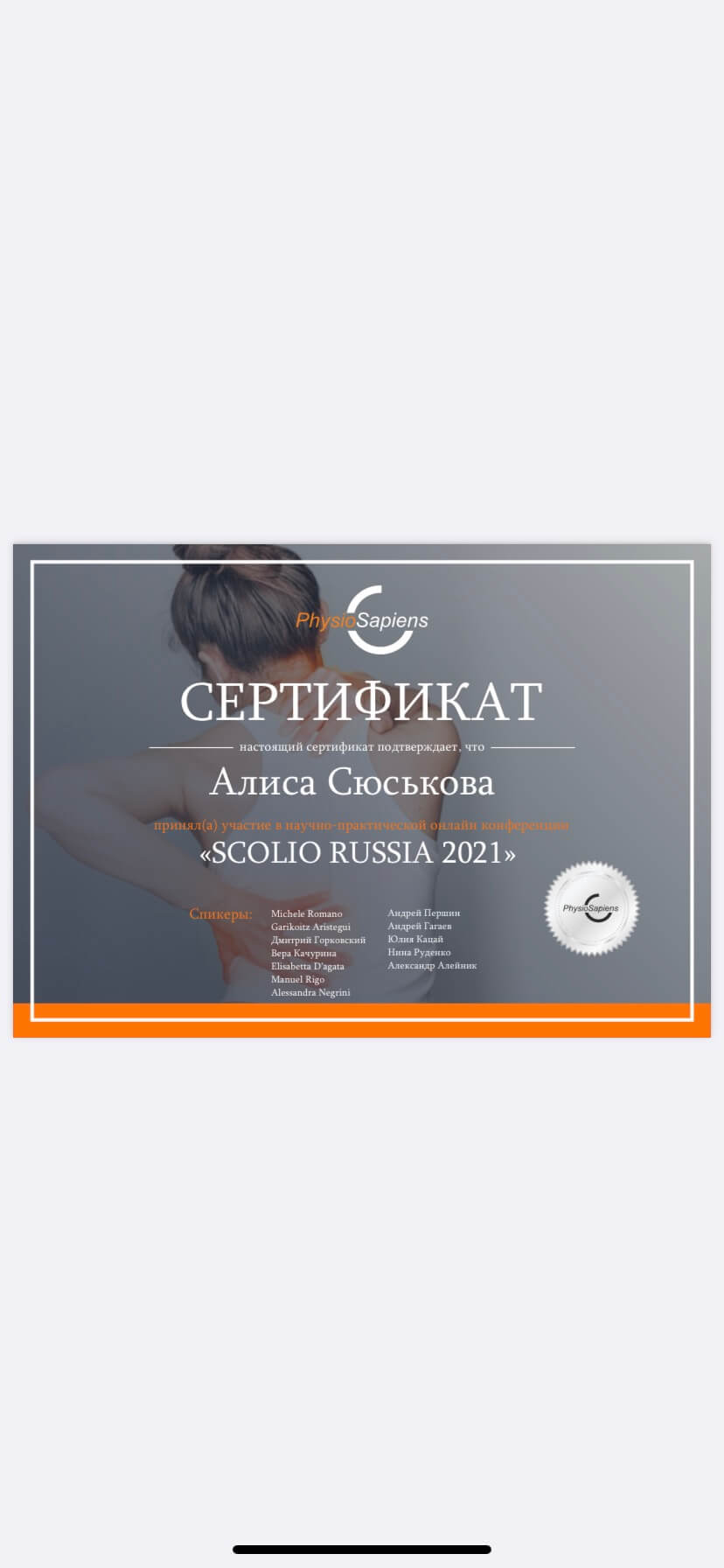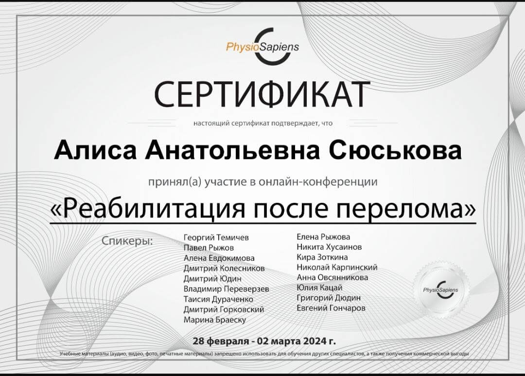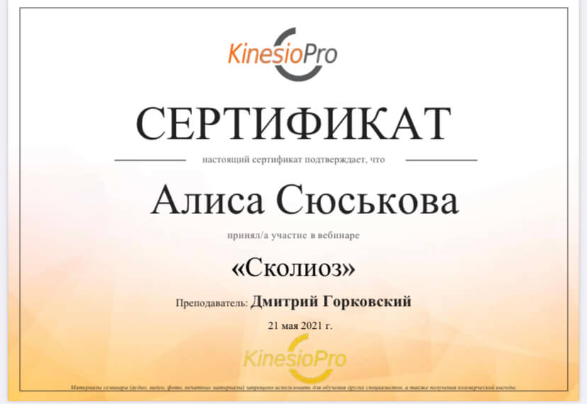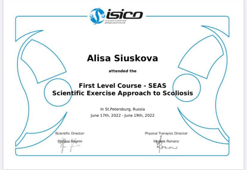 Специалист по адаптивной физической культуре, тренер-реабилитолог. Состою в команде ведущий специалистов России по консервативному лечению сколиоза